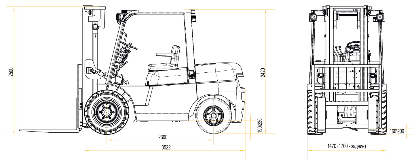 - Клиренс по мачте (с нагрузкой / без нагрузки): 160 / 200 мм