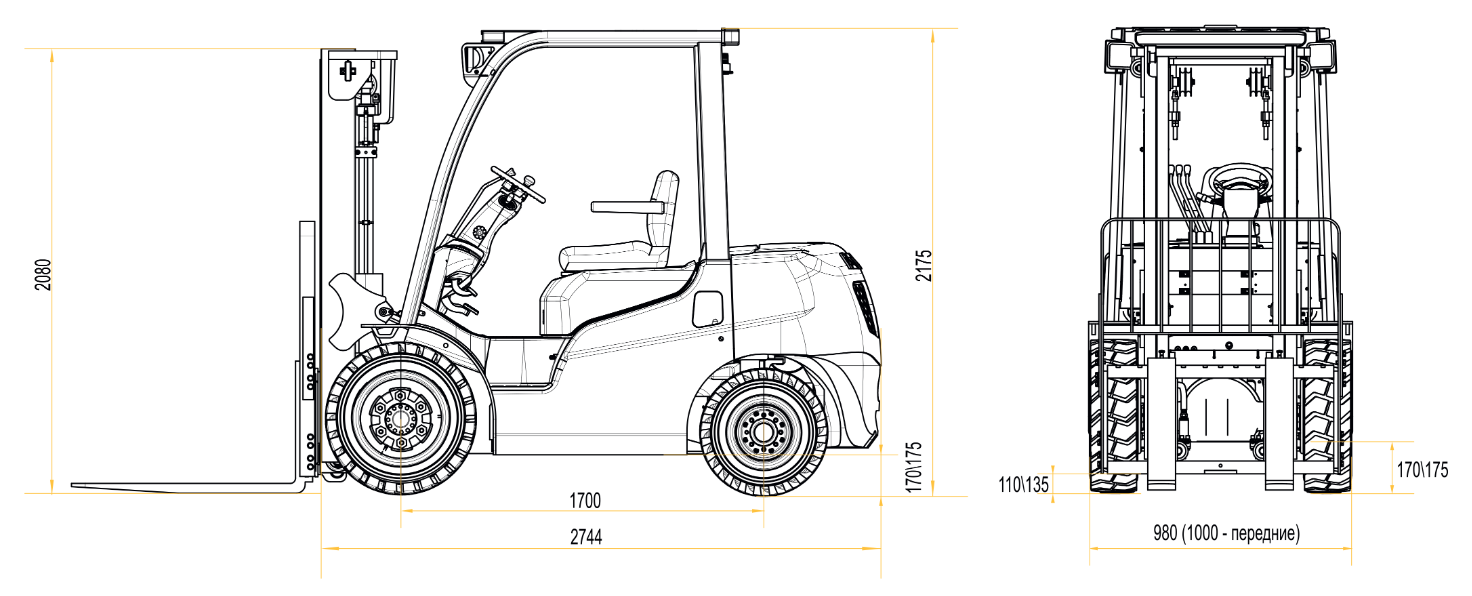 - Клиренс по мачте (с нагрузкой / без нагрузки): 110 / 135 мм